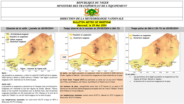 • une persistance de la légère poussière en suspension sur les régions de Zinder, Maradi et Agadez ;