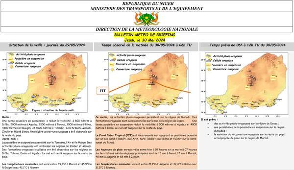 - le maintien de la couverture nuageuse sur le reste du pays accompagnée de pluie sur la région de Maradi.